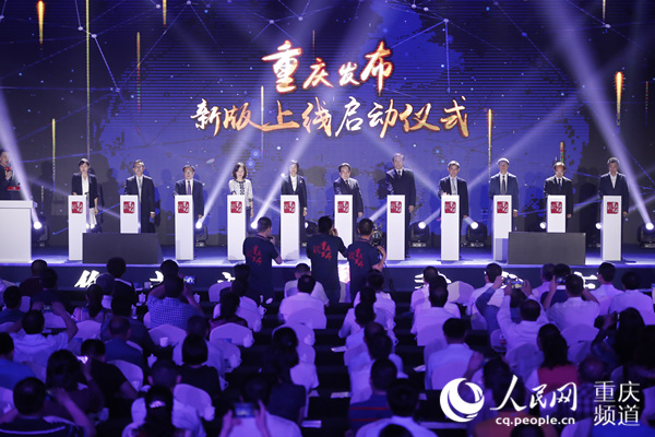 與會領導攜手點亮“重慶發布”新版上線啟動儀式。