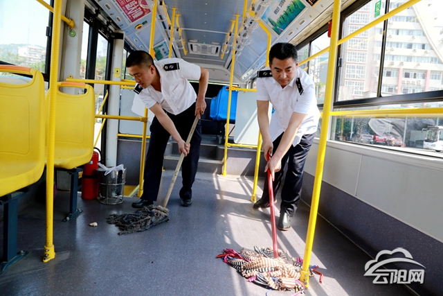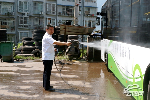 云陽網訊(記者 王彬彬 實習生 陳美岑)5月16日,記者來到東城車站的公交車停車場,看到公交車司機張偉正在清洗公交車。