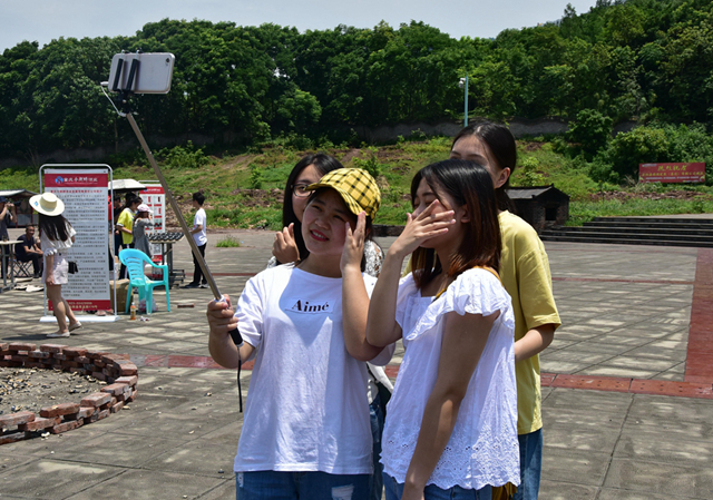 正值中午,太陽(yáng)火辣辣,但是也比不上大家的熱情,不少情侶身著情侶裝,帶著自拍桿在活動(dòng)現(xiàn)場(chǎng)拍下合照。