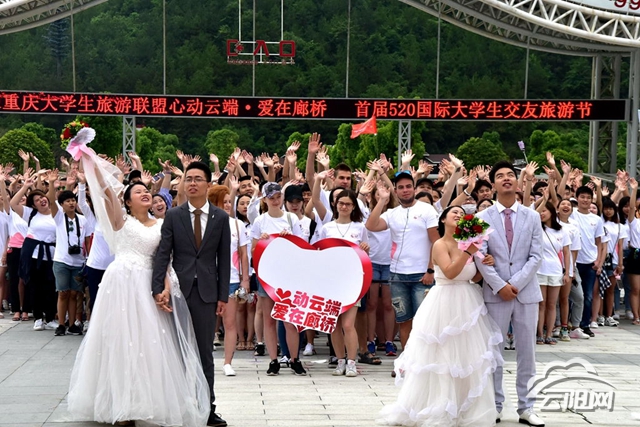 “3、2、1,大家一起跳起來!”5月19日,夜幕降臨后,在云陽龍缸售票廳的廣場上,隨著倒計時結束,篝火被瞬間點燃,在身著節日盛裝的土家兒女帶領下,1000余名大學生手拉手圍著篝火歡快地跳起擺手舞,場面震撼。跳完傳統的擺手舞后,大家意猶未盡,又踏著節拍,跳起了時下流行的兔子舞、海草舞。在火光的映照下,眾人還合唱起《小幸運》,輕快的旋律和揮動的熒光棒讓現場沉浸在一派歡樂氣氛中。