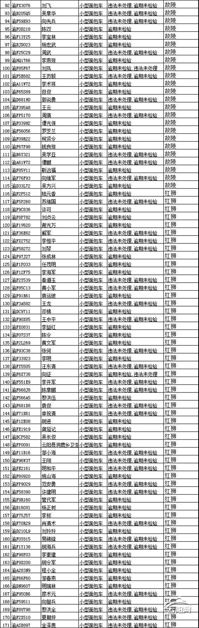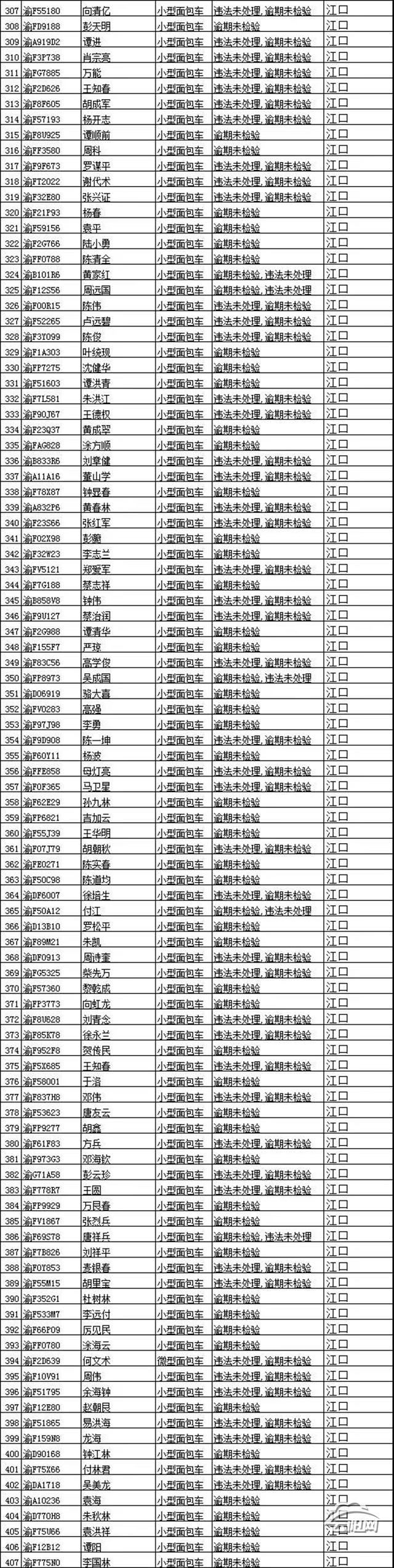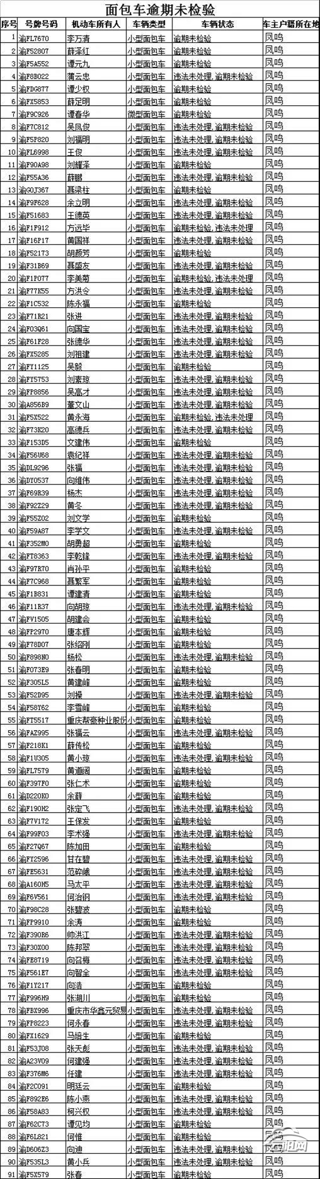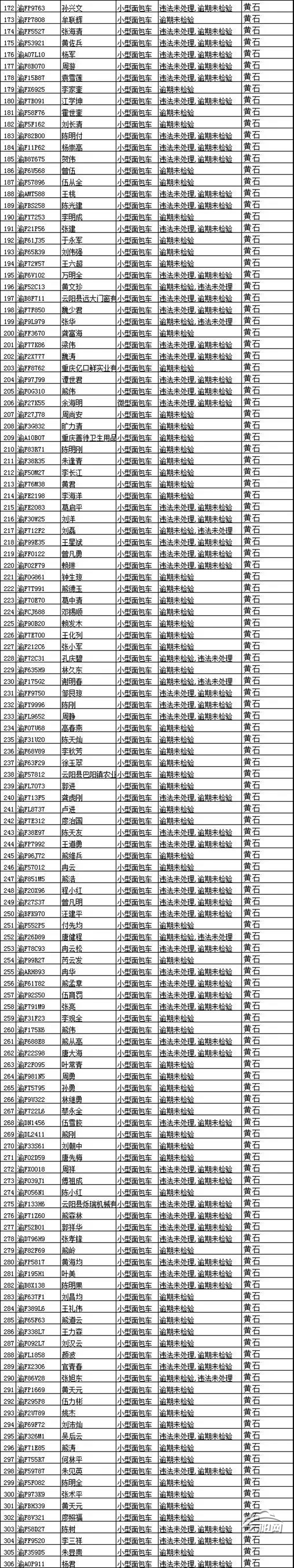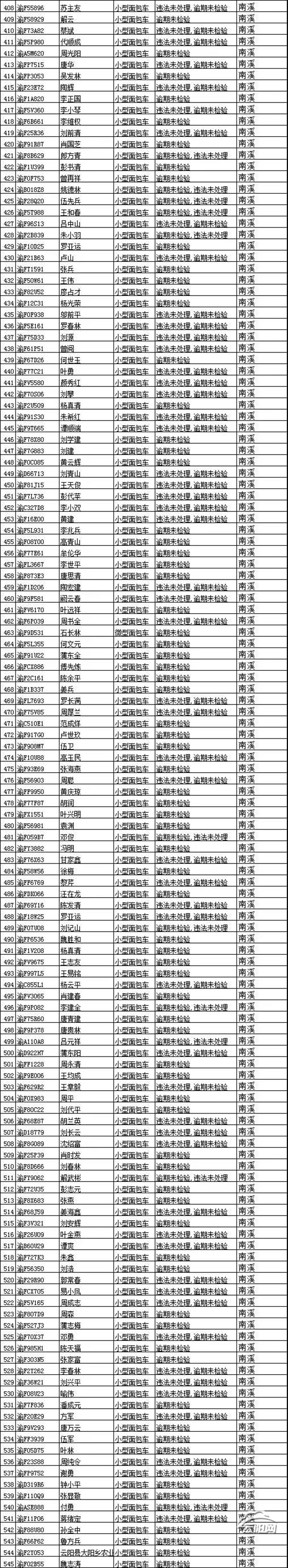請以下車主盡快辦理檢驗,消除安全隱患。