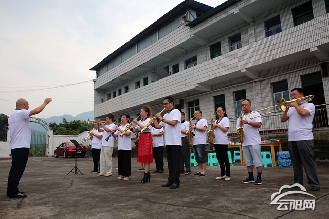 云陽(yáng)網(wǎng)訊(記者 劉興敏)“我的老父親,一生牽掛的你,看著你長(zhǎng)滿老繭的手,淌滿歲月的淚滴……”6月17日,云陽(yáng)縣管樂(lè)協(xié)會(huì)的任德清在管樂(lè)的伴奏下,一句句深情地演唱,田園風(fēng)光養(yǎng)護(hù)院老人謝方明流下了激動(dòng)的淚水。