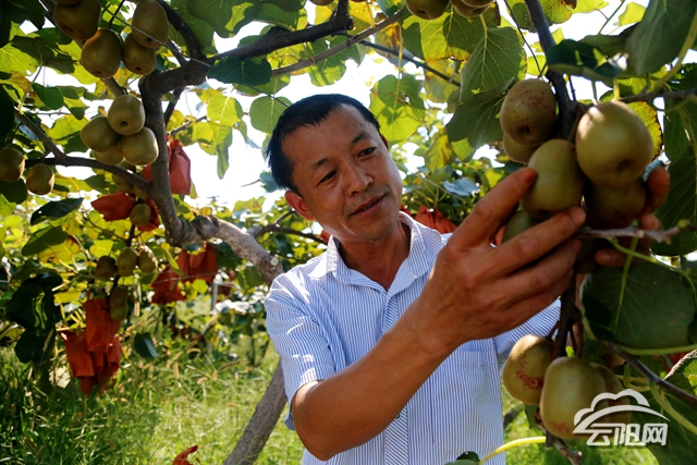 進入任意一家獼猴桃采摘基地,陽光透過片片綠葉,照在掛滿枝頭的果實上,一股清新的芬芳四溢開來,果樹架子與人齊高,藤蔓上如拳頭般大小的獼猴桃長勢喜人,一個接一個地偎在一起,一片豐收在望的景象,讓人垂涎欲滴。