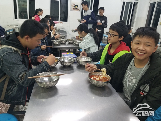 一位留守同學曾在作文中寫道:“天氣漸涼,寒燈初上,熱熱鬧鬧地與家人包頓包面對我來說成了一種奢望?!庇谑侵苣┑氖程糜辛藴剀暗囊荒荒唬汉⒆觽兒屠蠋焽黄鸢妫ハ嘟涣髦鴦撘獾陌?,與小伙伴們分享著生活中的喜怒哀樂……他們的臉上洋溢著快樂的笑容,寒意被驅散,冬天仿佛瞬間溫暖起來了。