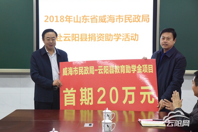 云陽網訊(記者 王彬彬)11月14日,山東省威海市民政局黨委書記、局長欒波率隊到南溪中學開展捐資助學活動,為學校捐贈20萬元。
