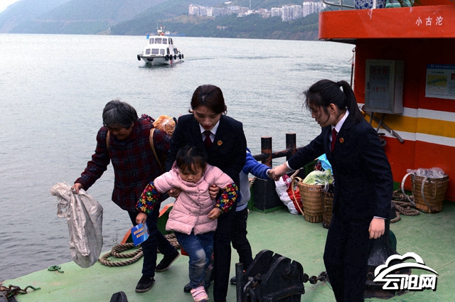 云陽網訊(記者 楊梅娜 通訊員 饒國君)11月15日,云陽龍洞鎮大麥沱社區碼頭,來自縣人民檢察院的“莎姐檢察官”與長江海事處的執法人員攜手同行,以熱忱的服務走進校園、碼頭、客艙,為正在有序放學回家的孩子們平安護航。20多年來,這種特殊的護航方式平安送達學生20余萬人,在三峽庫區樹起一道靚麗的風景線。