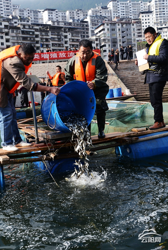 云陽網訊(通訊員 饒國君)11月26日,云陽縣在南溪古鎮碼頭前方水域舉行增殖放流活動,用長達6個小時的時間,將82萬尾魚苗陸續投放湯溪河畔的三峽平湖,以期促進魚類繁殖,涵養庫區生態。副縣長劉新民出席放流啟動儀式。