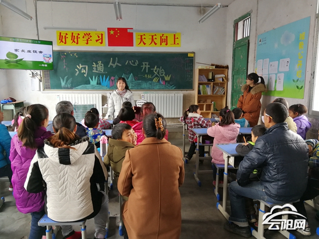 參觀完學校后,該校校長楊興祥在操場上對全體家長及師生進行了專題法制及安全教育講座,還為各年級品學兼優的學生和家長頒發了獎狀。最后,各班班主任組織本班家長在教室里進行了分班家長會,具體就孩子的在校表現、半期成績、安全常識、教育扶貧政策等方面與家長進行了深入交流。