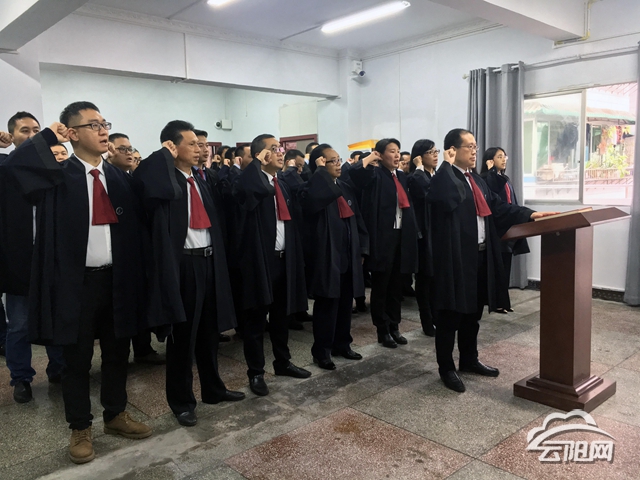 云陽網(wǎng)訊(記者 劉興敏)“我志愿成為一名中華人民共和國執(zhí)業(yè)律師……”12月2日,我縣律聯(lián)辦副主任李欽白左手撫按《中華人民共和國憲法》,帶領(lǐng)50余名執(zhí)業(yè)律師穿著整齊的出庭服裝,帶著徽章,在國旗下莊嚴(yán)宣誓。