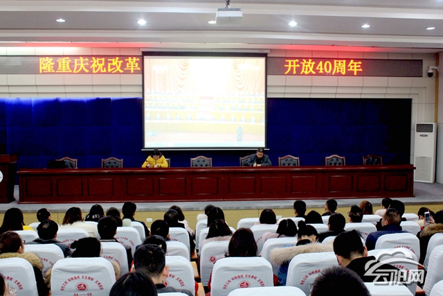 云陽網訊(記者 楊梅娜 通訊員 張酉權)12月18日,云陽縣第三初級中學組織全體黨員及無課教師觀看了慶祝改革開放40周年大會。