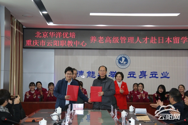 云陽網訊(記者 楊梅娜 通訊員 張小林)12月24日,云陽職教中心與北京華洋優培教育科技有限公司養老高級管理人才赴日本留學戰略合作簽約儀式在該校舉行。華洋優培授予云陽職教中心為“國際養老人才培訓基地”,標志著養老服務專業已落地云陽職教中心,填補了云陽康養行業人才培養的空白。