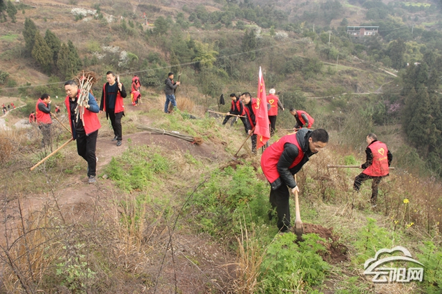 云陽網訊(記者 王彬彬 通訊員 劉鏈)3月11日,巴陽鎮鎮村干部和志愿者們扛著樹苗、拿著鋤頭、提著水桶集體上山開展“我為祖國植10棵樹”全民義務植樹活動。