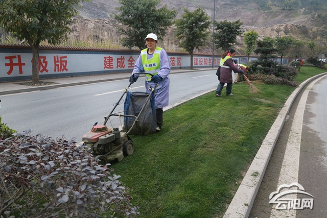 云陽網訊(記者 王彬彬)近日,記者在北城大道兩側的道路上,看到市政環衛工人正在對植物進行修枝剪葉,這正是縣城管局開展城市提升行動計劃的舉措之一。