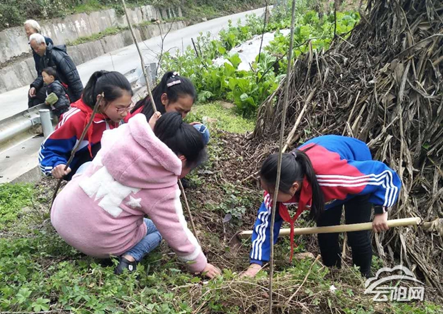 云陽網訊(通訊員 吳方莉 龍宜)3月12日,寶坪小學組織學校200余名師生在學校外山坡、公路兩旁開展“我為祖國植10棵樹”全民義務植樹活動。