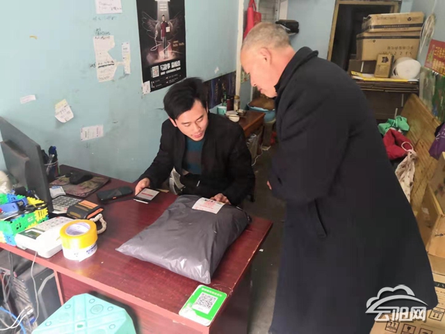 云陽網(wǎng)訊(實習生 洪琳)近日,記者在望江大道一圓通快遞門市看到快遞員溫發(fā)生正在幫助一名前來寄件的大爺打包快遞。