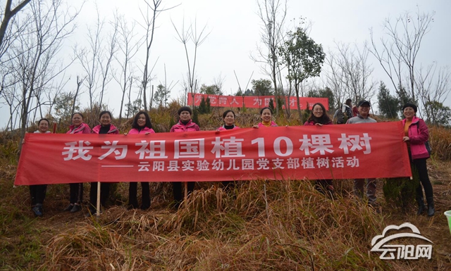 云陽網訊(實習生 鄧庭庭)3月13日,實驗幼兒園的全體黨員來到棲霞鎮開展“我為祖國植10棵樹”全民義務植樹活動。