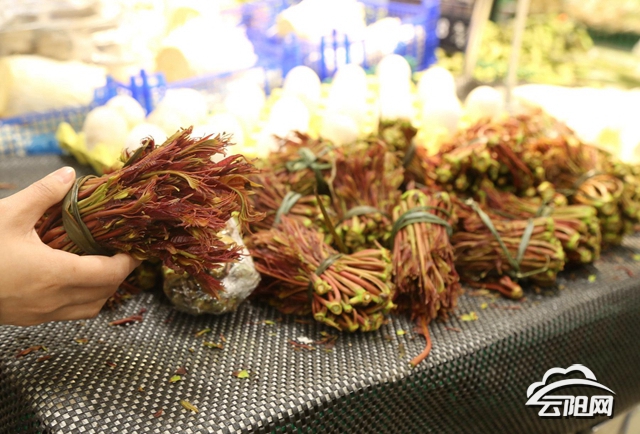 “賣椿芽咯!這個椿芽好,是紫紅色,再不買就沒了!”在富正菜市場,王大爺邊忙著秤椿芽邊吆喝著。王大爺告訴記者,頭茬椿芽是紫紅色,味道純正,清脆又香,所以價格比較高,之后的二茬、三茬椿芽顏色不再是紫紅色了,會呈現出綠色,口感也差些,價格會降至1—3元/兩。