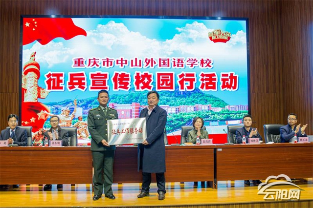 縣委常委、縣人武部政委肖霄為高中階段學校“征兵工作服務站”授牌;學生代表上臺領取兵役登記證;縣教委有關負責人宣讀了大學生入伍政策。