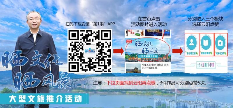 友情提示:云陽參加的“曬文化.曬風景”大型文旅推介活動在”第1眼“客戶端有“書記曬文旅””區(qū)縣故事薈“”炫彩60秒“三個板塊,每天每個手機號碼可以各點5次贊!點贊投票將截止到4月4日,僅剩四天時間!