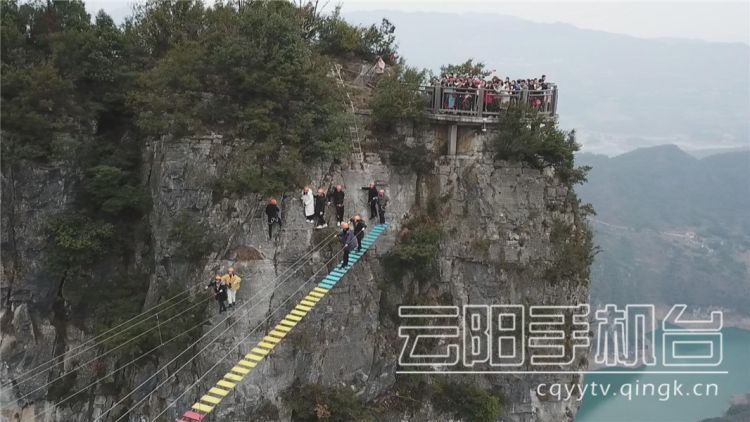 2019年1月,龍缸景區(qū)飛拉達體驗項目建成開放。項目建在海拔1000多米的絕壁之上,游客從云端廊橋左側(cè)懸崖進入攀爬系統(tǒng),一路緩下至云端彩橋,隨后跨過云端索橋,最后挑戰(zhàn)50米左右的垂直攀爬抵達終點,全長300米左右。游客行走其間,藍天白云就在頭頂,青山綠水踩在腳下,整個人放佛空中漫步。