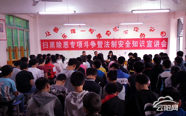 云陽(yáng)網(wǎng)訊(記者 李充 通訊員 吳明萍)4月10日,養(yǎng)鹿杉林初中開(kāi)展掃黑除惡專(zhuān)項(xiàng)斗爭(zhēng)暨法制安全知識(shí)宣講活動(dòng),切實(shí)增強(qiáng)全校師生的法制意識(shí),扎實(shí)推進(jìn)平安校園建設(shè)。