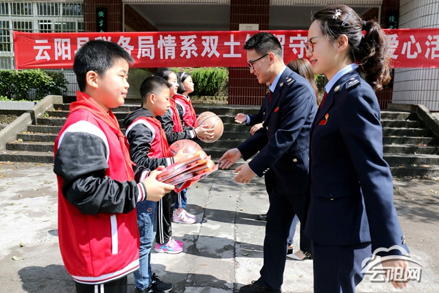 云陽網(wǎng)訊(記者 李旭忠 通訊員 汪良樹)“謝謝叔叔阿姨送給我們的新書包,我們一定會好好學(xué)習(xí),爭取做懂事的好孩子。”4月9日,雙土鎮(zhèn)長保村小的學(xué)生們接過縣稅務(wù)局青年志愿者們送上的新書包、文具盒等禮物,笑得很開心。