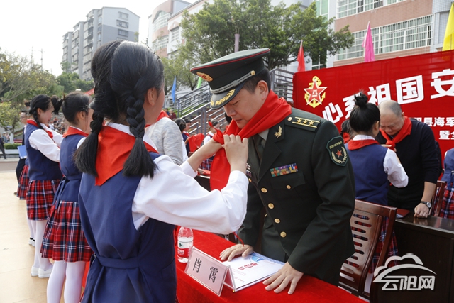 副縣長劉新民在致辭中說,海軍南海艦隊(duì)始終情系云陽教育,心系山區(qū)孩子,多次來到雙江小學(xué)走訪慰問,2017年,南海艦隊(duì)為學(xué)校援建了“國防教育室”。同時(shí),雙江小學(xué)圍繞“國防教育”的辦學(xué)特色,打造系列海軍特色文化,開展系列國防特色活動(dòng)。她要求,雙江小學(xué)要永遠(yuǎn)銘記南海艦隊(duì)官兵的深情厚誼,辦好人民滿意教育,回報(bào)南海艦隊(duì)全體官兵的關(guān)愛和支持。她希望大家要增強(qiáng)憂患意識(shí),做到居安思危,堅(jiān)持不懈地加強(qiáng)國防建設(shè),做好國防教育,提高國防素質(zhì)。要深刻認(rèn)識(shí)開展全民國防教育活動(dòng)的重要性,切實(shí)增強(qiáng)做好國防教育工作的使命感和責(zé)任感,營造全民關(guān)心支持國防建設(shè)的濃厚氛圍。