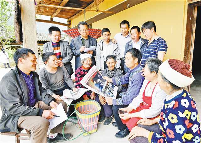 四月十八日下午,石柱土家族自治縣中益鄉華溪村干部群眾,學習當天報紙報道的總書記來重慶視察時的重要講話。特約攝影 楊波