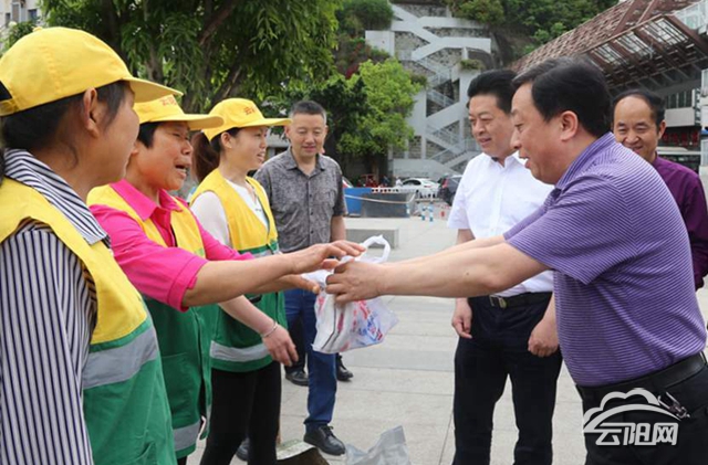 云陽網訊(記者 何競嘉)4月29日,縣委副書記丁笙洺、副縣長李大武一行到兩江廣場、杏家灣公園、民德廣場、群益廣場,慰問工作在一線的環衛工人,向他們送上節前的問候與誠摯的關懷。