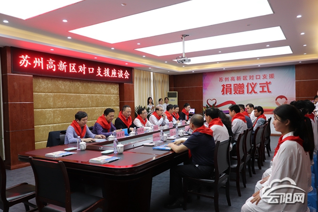 云陽網訊(實習生 鄧庭庭)5月12日,蘇州市高新區對口支援云陽座談會暨捐贈儀式在云陽蘇州高新區特教學校舉行,蘇州市高新區為云陽蘇州高新區特教學校捐贈30萬元。蘇州高新區黨工委委員、管委會副主任高曉東,副縣長劉桂虎出席會議。
