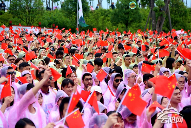 云陽網(wǎng)訊(記者 丁齊 實(shí)習(xí)生 鄧庭庭 劉超)“我和我的祖國,一刻也不能分割,無論我走到哪里,都流出一首贊歌……”5月19日,云陽龍缸景區(qū)北門廣場歌聲飛揚(yáng),5200名青年學(xué)生齊唱歌曲《我和我的祖國》和《我愛你中國》,用自己的實(shí)際行動(dòng),為偉大祖國70周年生日送上了一份特別的禮物。