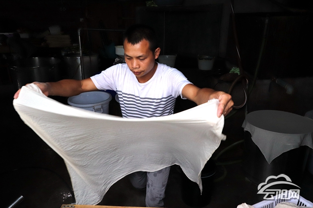 領到了貸款的熊道全立即把錢投入到豆腐加工坊的建設中,沒幾天,熊道全夫妻倆就開始將提前泡好的黃豆倒入機器中,研磨成漿,再經過濾、煮漿、點漿等工序,豆漿凝結成豆花,熊道全夫妻忙碌了兩三個小時后,為孩子們端出了一碗熱氣騰騰的豆花。短暫休息后,熊道全將豆花放入木框內,壓去過剩的水分做成老豆腐、嫩豆腐、豆腐干等,收工時已經是第二天凌晨凌晨兩點了。