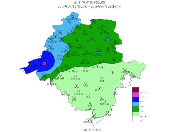 截至07時(shí),平安牛門(mén)117.3、龍?zhí)?8.4、渠馬51.7、養(yǎng)鹿50.8,雙龍、路陽(yáng)、農(nóng)壩、后葉、高陽(yáng)、南溪、江口、雙土、桑坪等9個(gè)鄉(xiāng)鎮(zhèn)大雨(26-49毫米),其余鄉(xiāng)鎮(zhèn)小到中雨;縣城7.2毫米。
