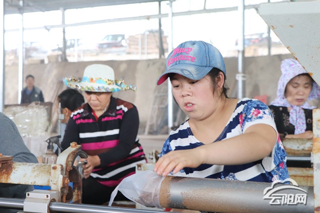 云陽網訊(實習生 劉浮生 劉超 )2016年,石門鄉石門社區昱達農業發展有限公司在當地流轉土地300余畝,生產黑木耳60萬袋,年產值達400萬元。每年用工高峰期時,有100余名當地村民在該公司務工,每人每天掙70元,解決了當地村民的就業問題。圖為工人正在罐裝菌棒。