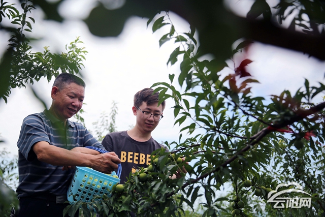 在高陽鎮(zhèn)老寨子山上,成片的李子樹一片蔥蘢,李子掛滿枝頭……當(dāng)日,一些游客來到李子園采摘青脆李,享受著高山納涼和采摘樂趣。