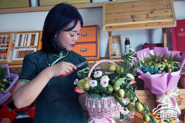 為進一步促進銷售,他們探索出了新的銷售模式,即將成熟的冬棗整枝剪下,再配以鮮花進行包裝,讓一顆顆棗子變成一束束“花棗”,既可食用又可欣賞?!盎棥币簧鲜校褪艿娇蛻艉陀慰偷那嗖A。