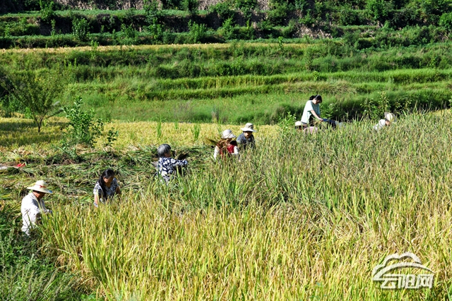云陽(yáng)網(wǎng)訊(記者 鄭紅均 通訊員 潘閱)金秋九月,秋風(fēng)送爽,正是水稻收獲的季節(jié)。9月9日,記者來(lái)到鳳鳴鎮(zhèn)太地村,看見(jiàn)黃澄澄的稻田延至天際,一望無(wú)垠,村民們正在田間收割水稻,一派熱鬧的收割景象。
