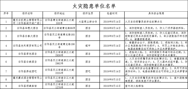 下一步,縣消防救援大隊將積極聯合各行業主管部門,加強對各行業單位進行隱患排查,并將不定時曝光消防安全問題突出單位,云陽消防微信、微博也同步進行曝光,督促隱患單位盡快整改,讓消防隱患無處藏身。