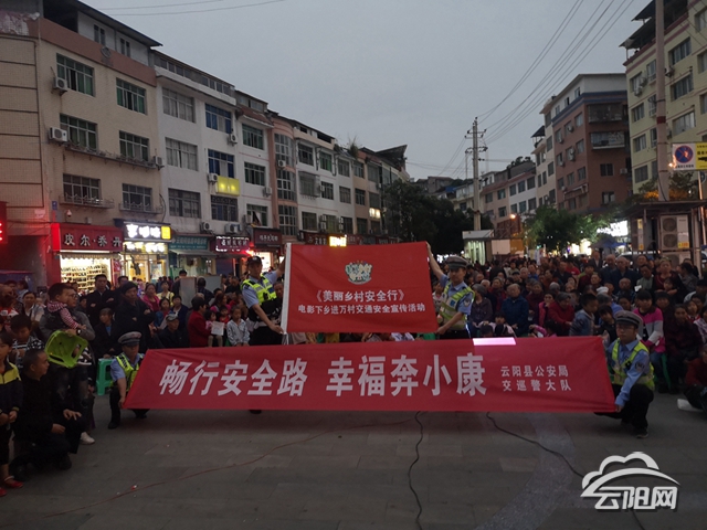 云陽(yáng)網(wǎng)訊(記者 王彬彬 通訊員 周黎潤(rùn)東)9月19日晚,鳳鳴鎮(zhèn)上千名名群眾聚集一起,觀看《農(nóng)村道路交通宣傳警示片》,參與交通安全知識(shí)競(jìng)猜活動(dòng)等。這是縣交巡警大隊(duì)著眼轄區(qū)交通安全實(shí)際,舉辦的“美麗鄉(xiāng)村安全行 電影下鄉(xiāng)進(jìn)萬(wàn)村”交通安全宣傳活動(dòng)首場(chǎng)秀。