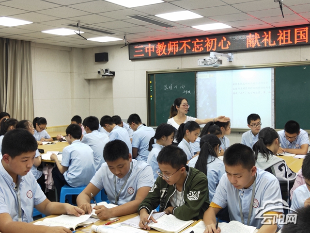 云陽網訊(記者 楊梅娜 通訊員 張酉權)9月23日,初三中全體語文教師齊聚錄播室,參加2019年下期初三中語文教師同課異構賽課活動,以別樣的方式慶祝新中國成立70周年。