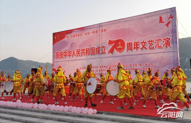 云陽網訊(記者 楊梅娜)9月27日,雙江街道杏家灣社區和縣委宣傳部、縣委編辦、縣法院、雙江派出所、杏家灣小學等共駐共建單位舉辦慶祝中華人民共和國成立70周年文藝匯演活動。