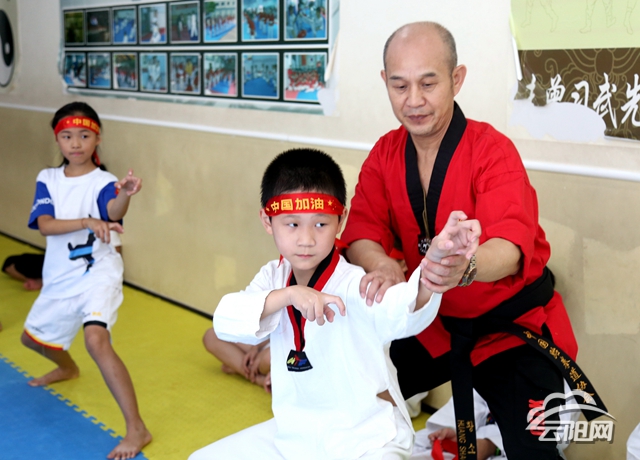 學習跆拳道的學生宋俊樺說:“今年是新中國成立70周年,我一定要好好練習跆拳道,更加勤奮學習,讓祖國變得更強大。”