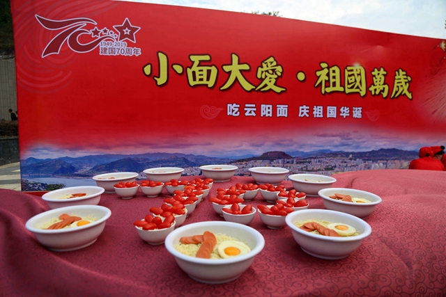 “我們舉辦這次景區免費吃長壽面活動,主要有兩個目的,一是用這種特別的方式慶祝中華人民共和國成立70周年;二是希望通過‘小面大愛·祖國萬歲’吃云陽面,慶祖國華誕這個活動,增強國慶節的儀式感、莊重感、榮譽感,也充分展示我們的愛國情懷?!笨h文旅委有關負責人告訴記者。