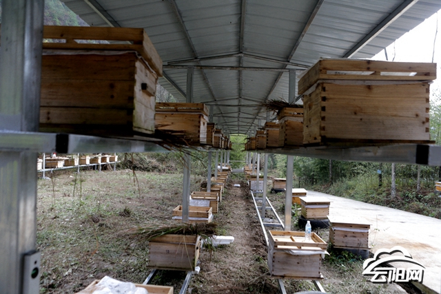 近日,記者在上壩鄉藥場村蜜蜂養殖基地看到,一排排蜂箱整齊排列,成群蜜蜂上下翻飛,辛勤采集野花粉,成為大山深處一道“甜蜜”風景。近年來,該村依托天然的生態環境、豐茂的植被資源,采取專業合作社+農戶模式,發展土蜂800箱,帶動160余戶農戶增收致富,戶均增收達3000元。(李充 攝)