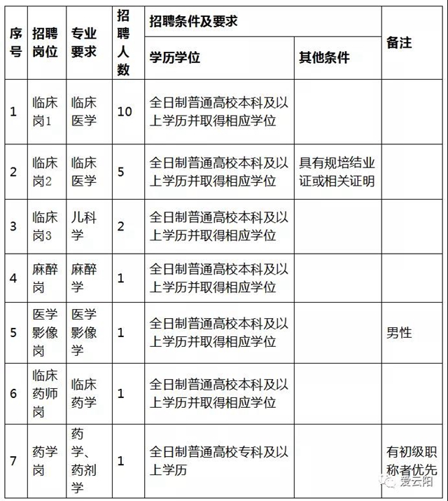 云陽縣婦女兒童醫院招聘工作人員崗位情況一覽表
