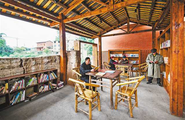 位于沙坪壩區豐文街道三河村的“豬圈書屋”,游客和村民在休閑、看書。(本報資料圖片) 記者 齊嵐森 攝