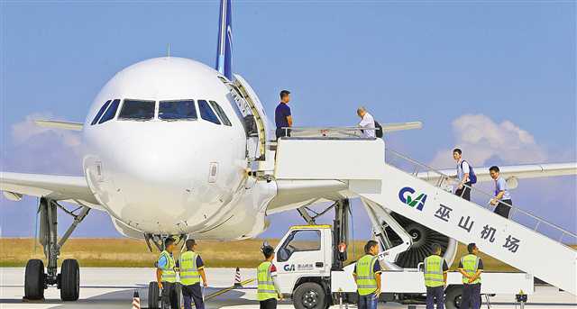 2019年8月16日,巫山機場建成投用。“在家門口就可坐飛機,50分鐘就到主城,不用坐五六個小時的大巴。”老家在巫山,工作在主城的市民李明稱。