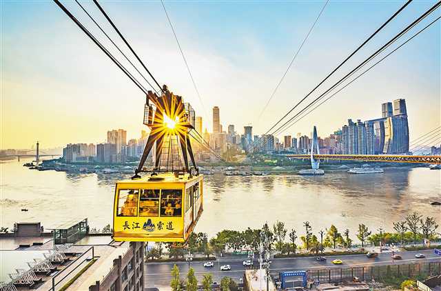 除了垂直升降梯,還有空中的變化——長江索道。