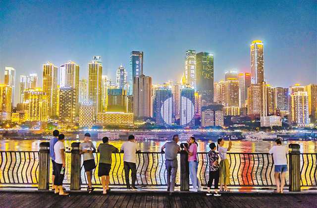 市民正在南岸區南濱路煙雨廣場欣賞山城夜景。記者 龍帆 攝
