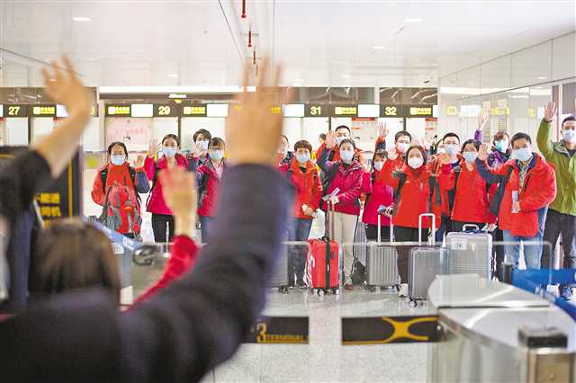 事實(shí)上,隊(duì)員們最難舍的是家人。離別時(shí),不少人流下了眼淚。“媽媽,你快去,把他們治好了,我就可以出去耍了。”5歲兒子對(duì)重醫(yī)附三院ICU副護(hù)士長(zhǎng)陳雨說,他以為媽媽只是去出差。看著兒子天真的表情,陳雨強(qiáng)忍著淚水。出發(fā)前,市第六人民醫(yī)院護(hù)士長(zhǎng)劉潔的兩個(gè)孩子抱著她不放手,女兒眼眶紅紅的,兒子一直在哭。“我在跟孩子視頻時(shí)安慰說,媽媽去外面給你打怪獸,我們回來之后,你們就可以出去玩了。”劉潔說完掏出手機(jī),又看了看孩子的照片。
